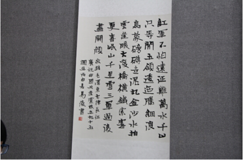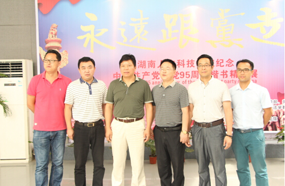 6月30日上午,党委书记郭军、校长刘和云等校领导来到逸夫楼美术与设计学院展厅,兴致勃勃地观看了学校纪念建党95周年楷书精品展。