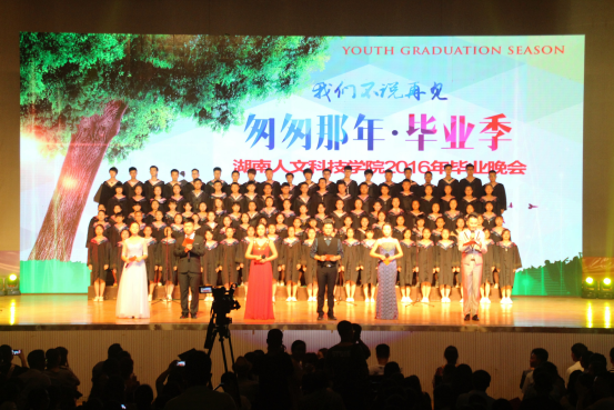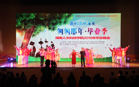伴随着炫目的LED大屏幕和雷鸣般的掌声,大合唱《梦想飞翔》拉开了主题为《匆匆那年》的毕业晚会大幕。随之播放的视频《不负韶华》记录了2016届毕业生由青涩走向成熟的每一个细节,写下了他们对母校一草一木的眷恋之情以及对大学生活的无限怀念。舞蹈《跃梦》、《青春绽放》勾起了大家对军训时光的温情回忆。充满激情的街舞《See you again》、情景剧拉丁舞《匆匆那年》和人文版改编歌曲《南山南》,将大学四年的酸甜苦辣咸展现得淋漓尽致。同学们被首次采用的LED舞台动感背景和精彩的节目所吸引,纷纷在现场微信墙中点赞。互动采访环节,412分考研学霸王康和“创业小达人”杜鹏纷纷表达了对学校和老师的感激之情,并带领所有毕业生一起为老师献花,现场还采访了材环学院刘桂英副书记,她代表老师向毕业生送上了祝福,师生相拥话别的场面将晚会推向了高潮。歌伴舞《老师,我想你》诉说了浓浓师生情。朗诵《我们一起走过的青春》道出了同学们在人文的点点滴滴。最后,晚会在《二十年后再相会》欢畅的歌声中完美落下帷幕。