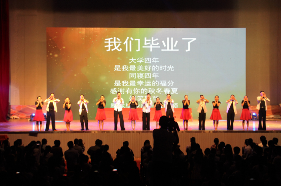 毕业典礼上教育学院合唱校歌《梦想飞翔》