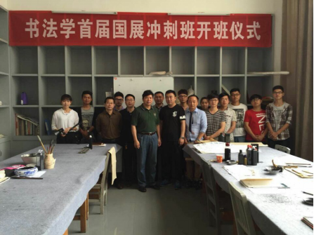 随后,刘和云校长一行看望了正在刻苦创作的“书法国展冲刺班”的学生们,他对老师们在课余时间辅导学生创作,不计报酬、无私奉献的敬业精神和高尚的师德表示赞许,勉励“书法国展冲刺班”的学生们发愤练习,多出精品,不辜负老师期望,力争每年上几个国展,为学校争光,在奉献中同时实现自身的不断超越。临走时,刘和云校长叮嘱美术与设计学院的主要领导和书法学专业负责人,希望美术与设计学院书法学全体教师群策群力,积极思考与探索转型发展之路,将书法学专业办出特色,走内涵发展、特色发展之路,努力将书法学专业打造成为我省最具影响力的品牌专业。(美术与设计学院彭建成供稿)