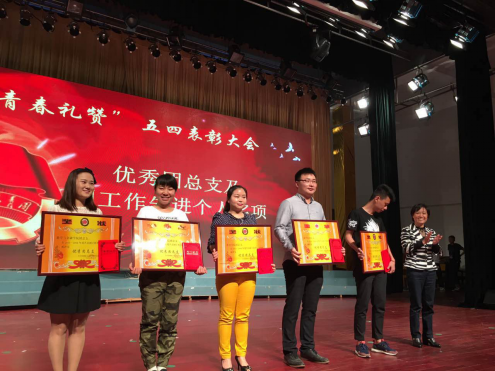 纪委书记李凤莲为五个获得优秀团总支的学院(数学与金融学院、农业与生物技术学院、教育学院、商学院和材料与环境工程学院)以及先进个人颁奖