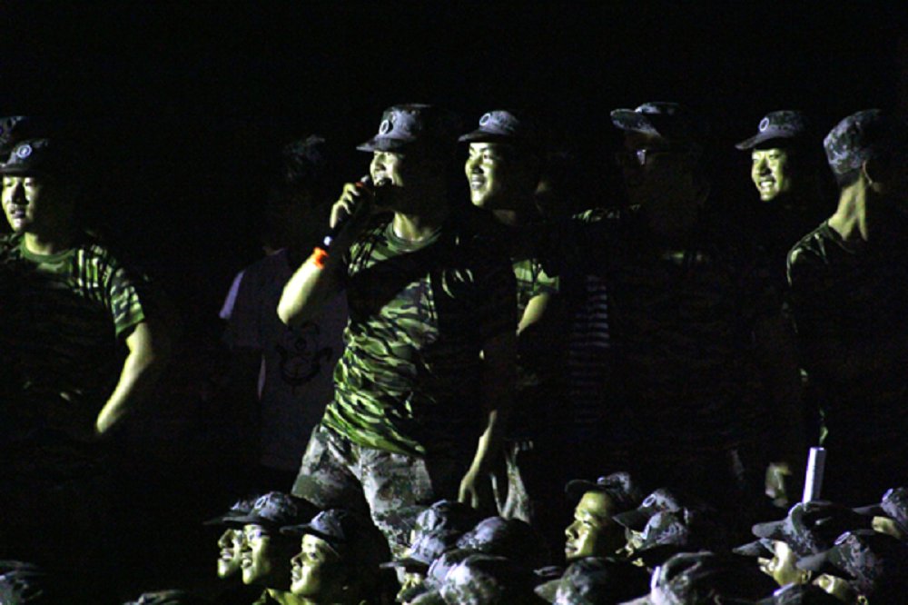 军训以来,教官留给新生的印象都是严肃的,而今天,教官们合唱的一首《情非得已》,让新生感受到了不一样的教官。