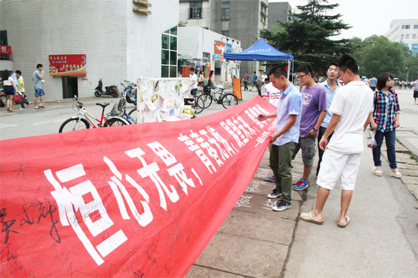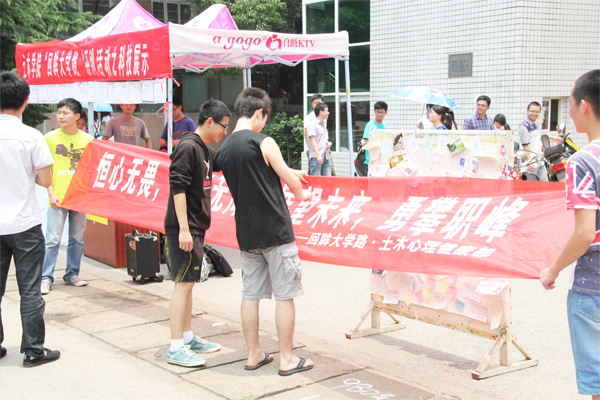 6月8日中午,由776net必赢官网心理健康部主办的“回眸大学路”之“毕业寄语”活动在南校美食广场前成功举行。心理健康部以“恒心无畏,青春无悔,展望未来,勇攀职峰”为口号,发动全院学生将他们想对大四学长、学姐说的话写在便利贴、贺卡或者明信片上,最后展示在宣传板上,以表达对毕业生的祝福。