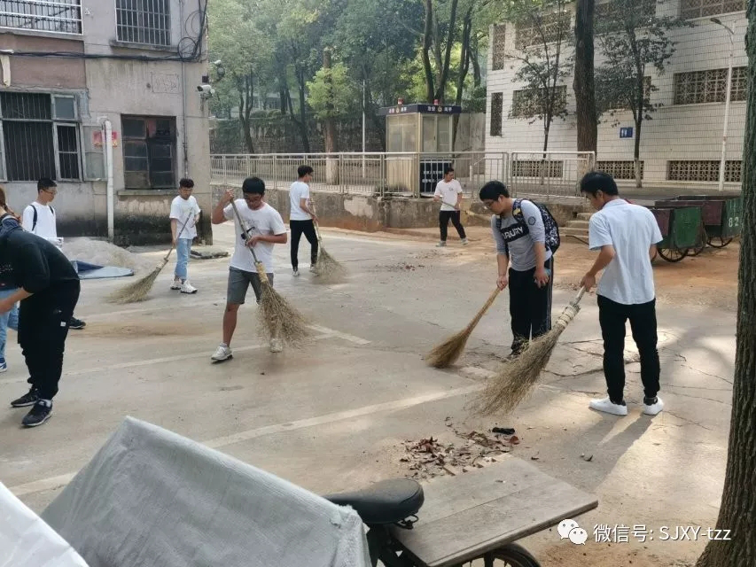 (同学们在认真的打扫卫生) (图片来源:beat365正版唯一官网必一数学与金融学院微信公众号)