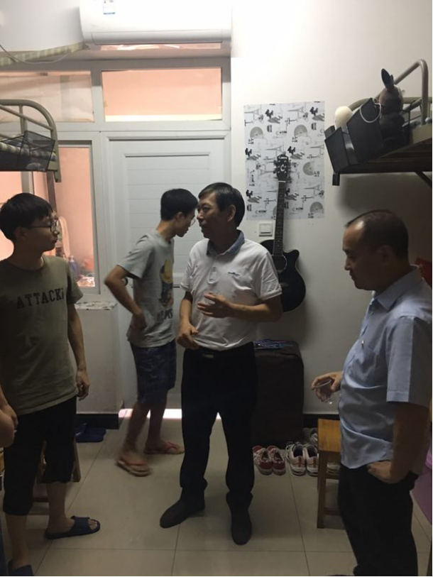 庆祝祖国70周年,营造平安稳定的校园环境。9月25日下午学校党委书记郭军、党委委员副校长刘铁峰带领职能部门相关责任人,开展全校性的安全大检查并深入学生宿舍看望同学们。