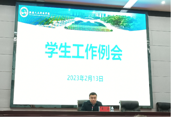 会上,学工处处长陈刚、武保处处长魏彦煜、创新创业学院院长刘红燃、团委李林奇科长分别回顾了2022年学生管理、校园安全与征兵、就业创业和引领青年等方面的主要工作和成绩,并对2023年的工作进行了安排。