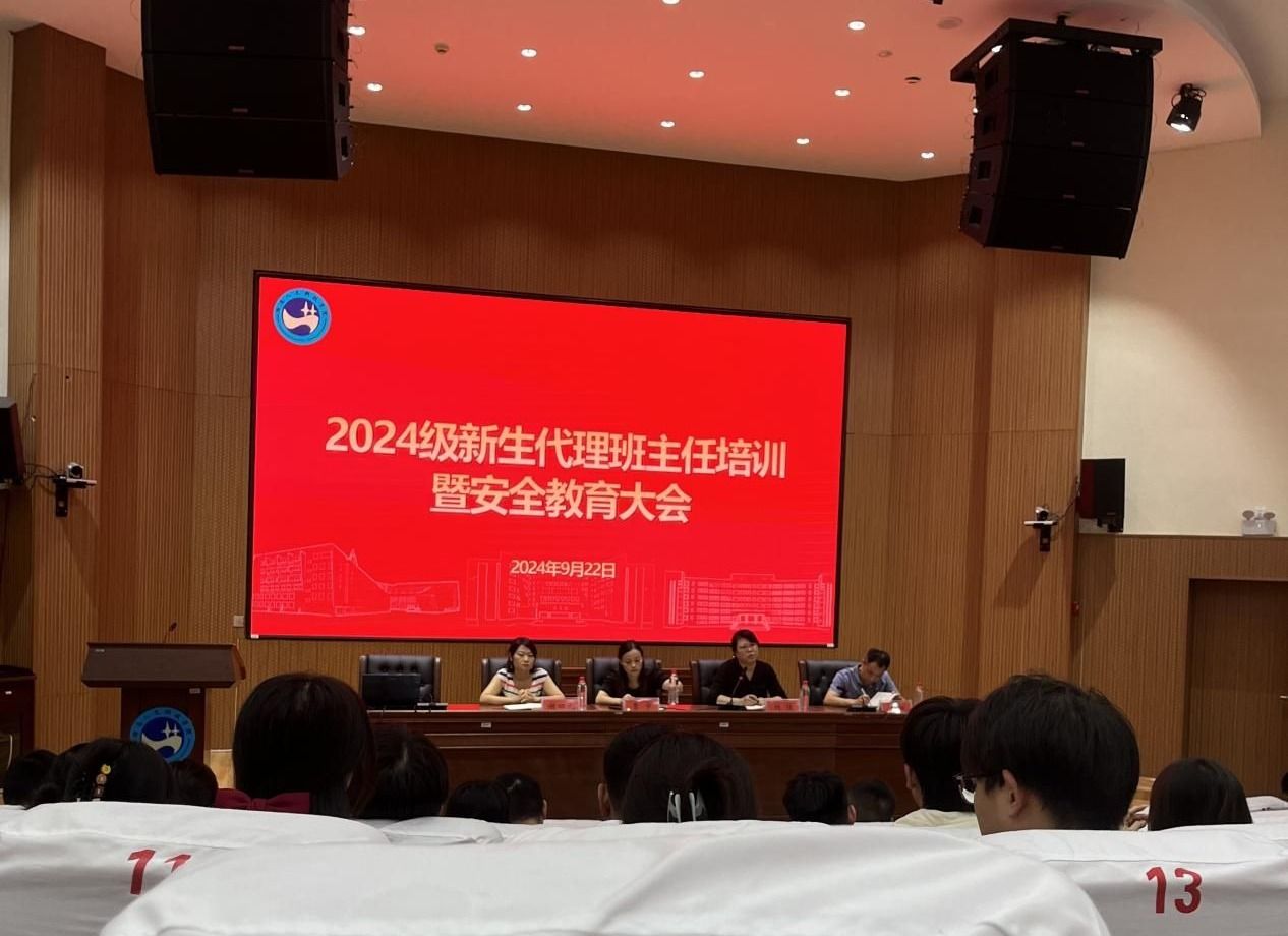 9月22日上午,beat3652024级新生代理班主任培训暨安全教育大会在匠成楼报告厅举行。团委书记刘佳,学工部、武装部部长曹宇,学工部、武装部副部长谢四元、娄底市公安局娄星分局大科派出所副所长李俊缘,一级警长刘新辉出席会议,会议由学工部、武装部副部长宋双主持,各学院学工办主任、军训联络辅导员及2024级新生代理班主任参加会议。