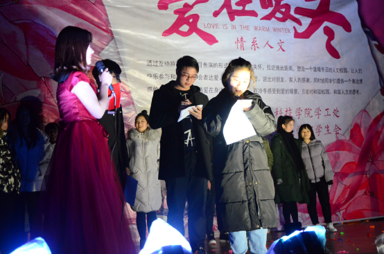 12月15日晚七点,由beat365学工处主办,校学生会承办,校学生会文体部策划的首届“爱在暖冬”活动于一食堂前坪顺利开展。现场秩序良好,同学们踊跃参与,活动在一片温馨而浪漫的氛围中顺利完成。