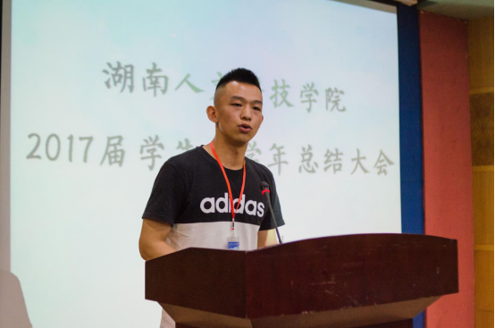 体育学院学生分会主席李扬代表分会主席发言。他介绍了本院学生会在教学、宿舍以及教室卫生等多方面改革的成果,鼓励大家要敢于尝试,敢于改革,发扬学生会“团结同学,服务师生”的优良传统,团结一心,共创学生会命运共同体。