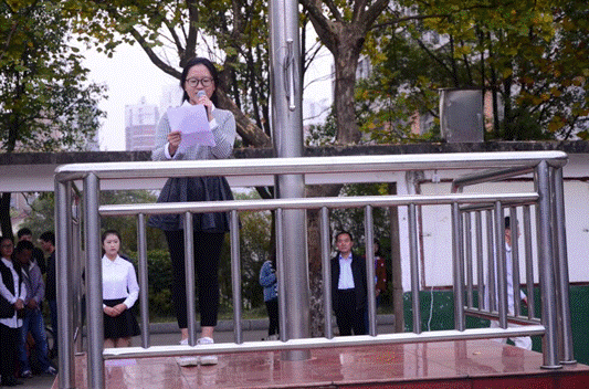 新生代表袁浩发表国旗下讲话,纪念80周年长征之旅,呼吁同学们继承并发扬长征精神,争做祖国优秀的下一代。
