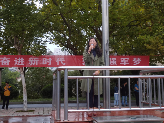 升旗仪式后,来自学校护卫队的学生代表胡诗婷作国旗下演讲,她以《血染的风采》为主题,呼吁大家不忘历史,国家兴亡,匹夫有责,一起为祖国的国防事业添砖加瓦。