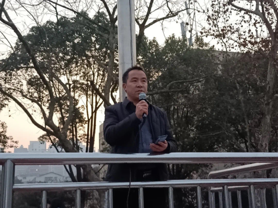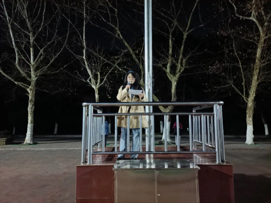 国旗护卫队踏着整齐的步伐将国旗送到了栏杆下,伴随着激昂的《义勇军进行曲》,鲜艳的五星红旗徐徐升起。仪式之后,商学院2020级的苏靖岚同学以构建优良学风、诚信参考为主题进行了国旗下的演讲,她提出我们应该在思想观念、学习生活、做人做事等方面构建优良学风,积极备考,诚信参考。随后,学工处刘红燃处长为全体20级新生进一步进行了以“学风”为主的讲话,她提出大学里抓好了学风,校园风气就会好,学校就会蒸蒸日上,我们的未来就会越来越美好;并且还提到了防骗、宿舍安全、冬季防火等问题。最后,武装部郑秀星部长号召学子们提高国防意识,激发爱国热情,鼓励同学们积极踊跃报名光荣参军,响应祖国号召,接受祖国挑选,参军卫国。