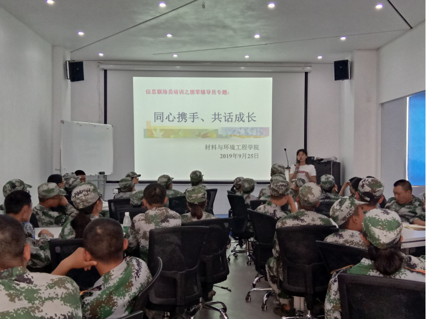 2019年9月25日中午,材料与环境工程学院在匠成楼路演厅开展了“同心携手,共语成长”信息联络员之朋辈辅导员专题培训。此次培训由辅导员陈佩君老师主持,2018级、2019级信息联络员之朋辈辅导员参加。