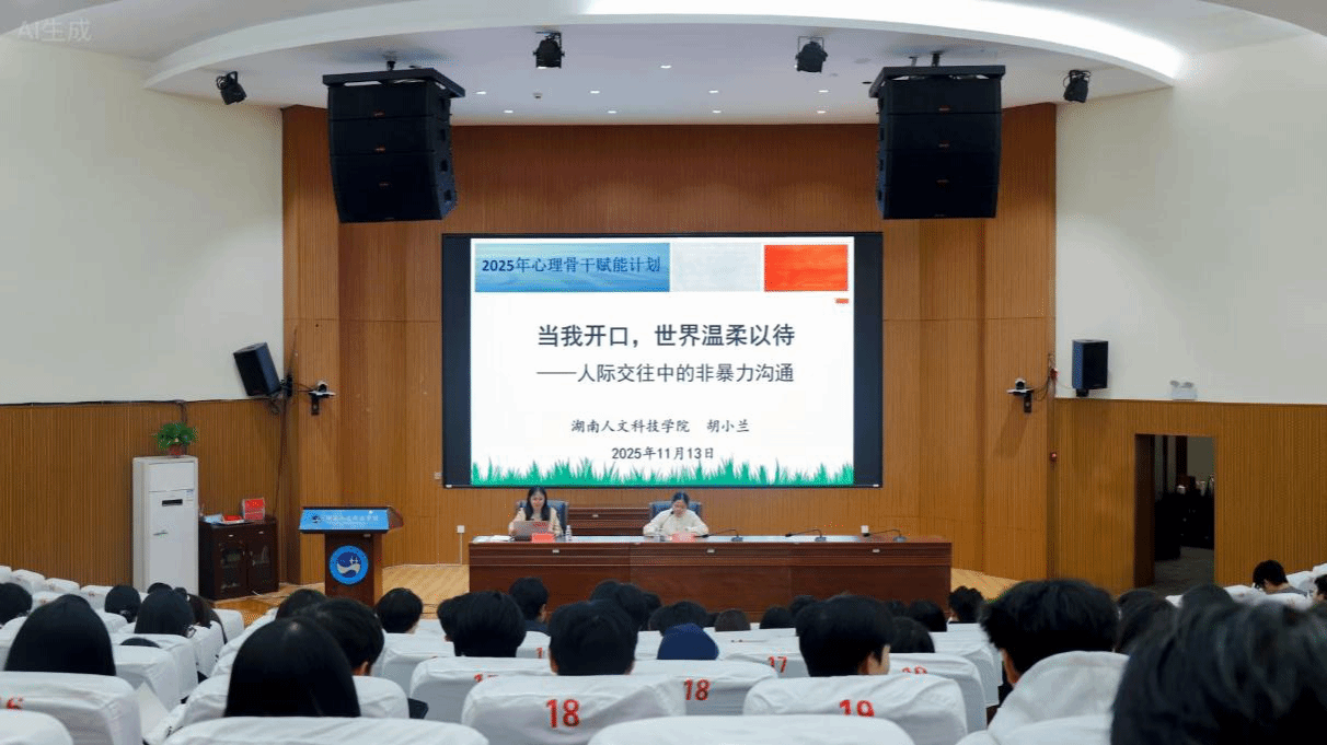 本次培训规划了四大核心课程模块。娄底市荣军优抚医院的孙艳主任借助典型案例剖析,系统地传授了心理危机的识别方法与干预策略。教育学院的胡小兰博士运用情景模拟教学,生动地展示了非暴力沟通的四大核心技巧。大学生心理健康教育与咨询中心的王咸沣老师结合朋辈互助案例,深入地阐释了共情与倾听技巧。马克思主义学院的张得才老师创新性地提出“成长式班会”理念,指导学生将传统班会升级为促进学生发展的特色活动。此次培训采用线上与线下相结合的方式,实现了对2025级新生的全面覆盖。