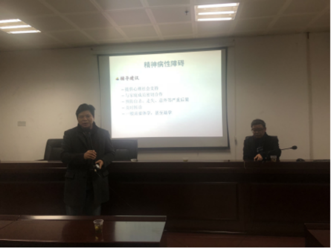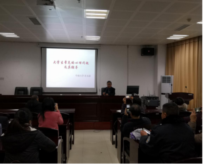 肖教授首先阐述了大学生常见心理问题的概述,包括心理问题的界定、分类、根源和心理辅导的基本要求;其次介绍了大学生常见的四大类心理障碍,结合大量生动实例,幽默风趣、深入浅出讲述了适应性障碍、游戏障碍、人际关系障碍和精神病性障碍,其中适应性障碍又包括了学业、睡眠和情绪多方面的问题。最后对心理危机与自杀评估的常用评估与处理方法进行了专业指导。他提倡教师应当关心、理解、接纳和支持学生,并学会联合团队、家长和其他校内外资源,有效地对需要辅导的学生进行快速评估,必要时转诊。报告令在场领导和老师们受益匪泛、收获良多。
