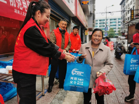 10月15日上午,beat365正版唯一官网必一信息中心副主任邓敏超带领信息中心工作人员和信息学院学生志愿者参加了beat365正版唯一官网必一网络安全进社区活动。beat365师生进入大科社区和竹山社区,联手当地社区干部给社区居民发放网络安全宣传资料,向大家宣传网络安全法律法规、普及网络安全知识,取得了很好的成效。