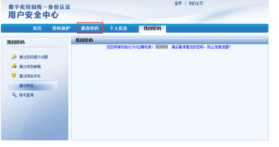 七、点“修改密码”,通过6位随机数密码登陆系统。
