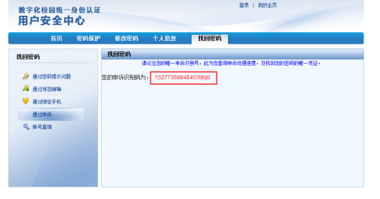 六、信息提交后,会生成一个申诉识别码,请记住你的申诉识别号,此为查询申诉处理进度,及找回密码的唯一凭证。(申诉识别码建议保存在word或者记事本中,后面会用到)