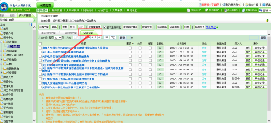 需批量操作文章数比较多的时候,可以选择每页显示的文章条数,以增加每页显示的文章数,见下图
