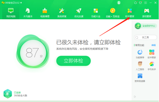 打开360安全卫士——软件管家