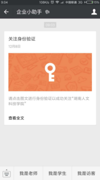7、打开学校微信企业号,即可使用微信企业号的功能。