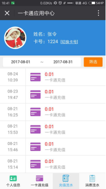 进行一卡通的卡切换,切换后查询以及充值的卡片均为切换后的那一张。充值前请务必确认要充值的一卡通号,确认后再充值。