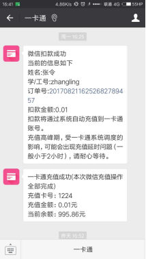 进入校园一卡通查询充值的主页。主页为消息型主页,可接收一卡通充值与微信扣款的通知。如下图所示: