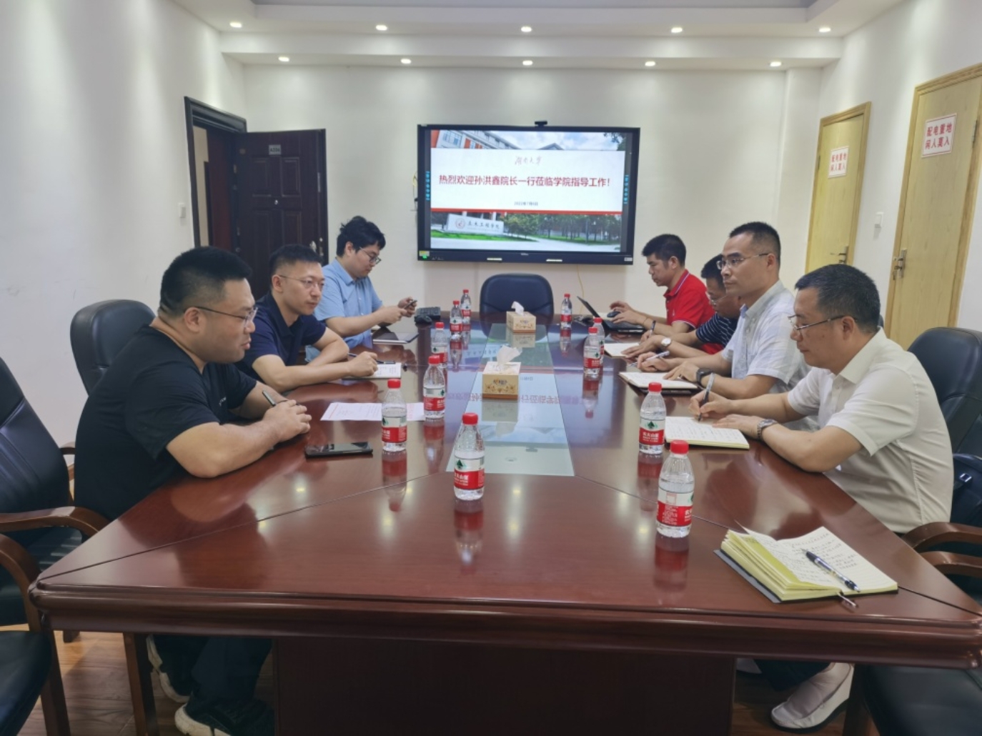 7月6日,必赢官网院长孙洪鑫教授率队前往湖南大学776net必赢官网调研交流。湖南大学776net必赢官网院长邓露教授、副院长华旭刚教授、副院长张超教授出席交流会。