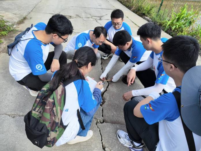 实践团通过对山阳村公路灾害的现场调查,发现部分公路路面存在裂缝,影响了村民出行和交通安全。为帮助学生更好理解和掌握公路灾害的形成机理和特征分析,任中俊老师和张宗堂老师对实践团进行详细指导。张宗堂老师讲解到:“在部分路段道路两侧存在水沟,使得道路路基发生了渗流现象和不均匀的沉降,导致路面应力超过承载能力,从而产生了裂缝。”实践团使用皮尺对路面裂缝进行准确的测量,并记录数据。经过现场分析,沉降的原因可能与地质条件、地下水位、土壤性质、施工质量等因素有关。