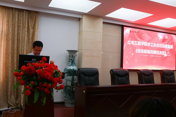 之后,王艳副书记发表讲话。她强调母校是校友永久的“品牌”,校友是母校靓丽的“名片”,是学校发展最具亲和力、最具潜力的优质资源,是学校永远信赖和依靠的重要力量。王书记对联络员寄予厚望,提出四点要求:当好母校精神的传播者,秉承“唯实惟新,至诚致志”的校训,内化于心,外化于行;当好联络校友感情的使者,牢记使命、认真履行职责、密切联络校友;当好不忘初心,敢于担当的奋斗者,在最好的时代做出最努力的奋斗,成为更好的科大人、土木人;当好协同发展的促进者,以服务校友、服务母校、服务社会为宗旨,无私奉献,积极作为,认真开展校友联络工作,充当校友与母校联系的桥梁纽带。会议的最后老师们给联络员颁发聘书并合影留念。
