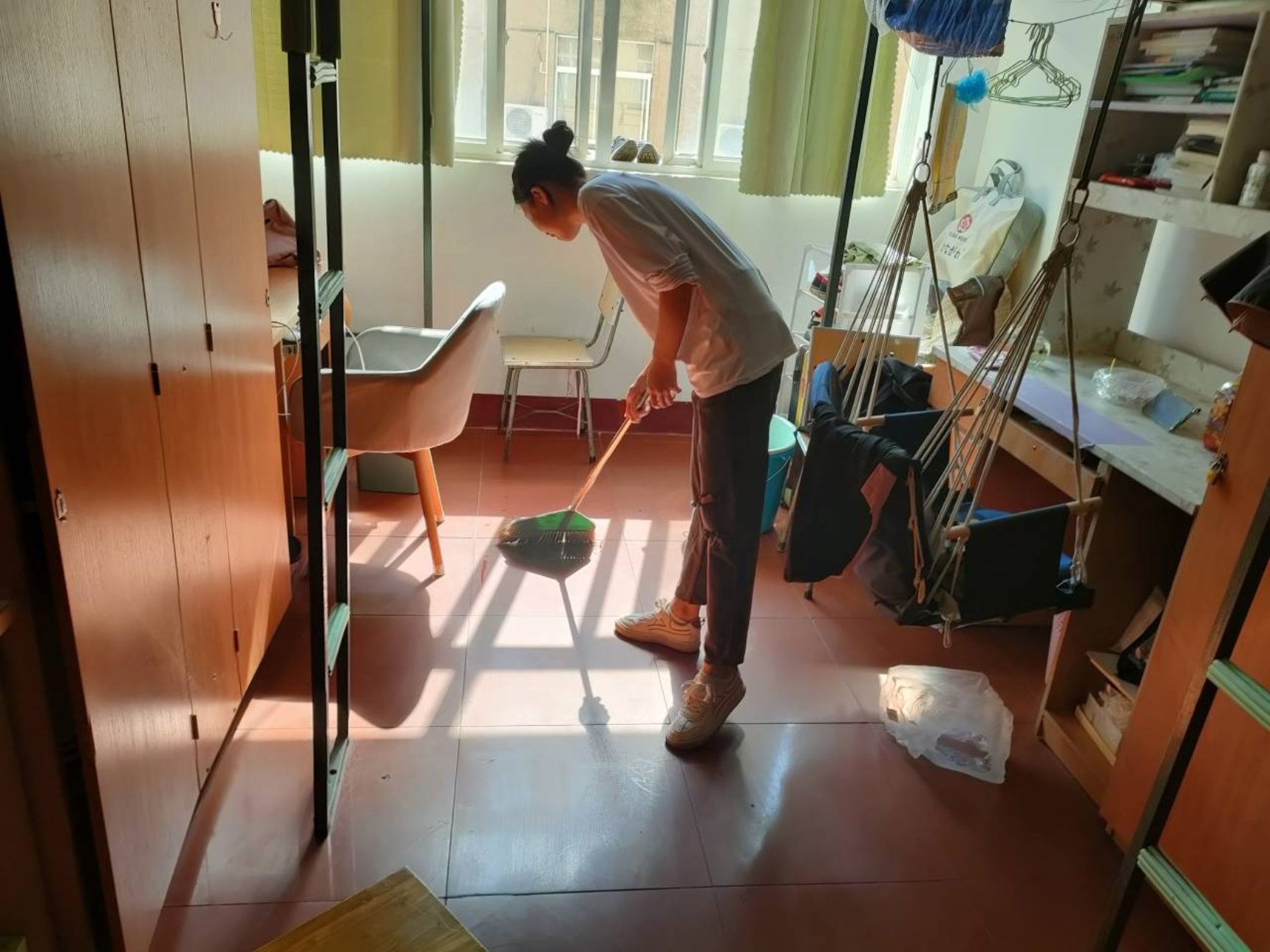 “为建设文明校园贡献自己的一份力量。舒适美好的校园环境需由我们的双手来创造,我们看到劳动打扫后美丽的宿舍、教室和校园非常开心。”21级张政说到。