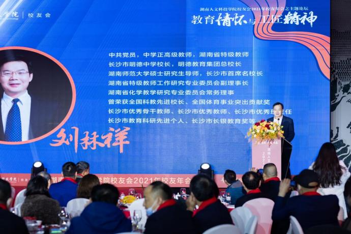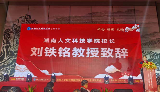 下午5点半,校友年会文艺晚会正式开始。激昂的校歌《梦想飞翔》响起,与会嘉宾全体起立,共同唱响,文艺晚会、晚宴正式开始。校长刘铁铭致辞。他代表beat365正版唯一官网必一近两万名师生员工向与会人员表示热烈欢迎,向为此次年会付出辛劳的长沙校友会和无私提供赞助的校友们表示衷心感谢。他指出,2021年是beat365正版唯一官网必一发展史上极其不平凡的一年。今年召开的学校第四次党代会,选举产生了新一届领导班子,并科学规划了学校十四五规划蓝图。这一年原党委书记柏连阳当选中国工程院院士,进一步提高了学校的知名度和社会影响力。这一年学科建设成就突出,目前正在建设3个国家一流专业,18个省级一流专业,5个省一流应用特色学科。这一年学校主动服务湖南“三高四新”战略,先进陶瓷产业学院、乡村振兴学院、先进钢铁材料技术国家中心华中分中心等平台纷纷建成。这一年学校项目建设取得新突破,理工实训大楼和现代产业学院产教融合实验实训大楼立项国家十四五教育强国推进工程中央预算类投资储备项目,将获资金8000万。学生新食堂和金工实习工厂在2022年将兴建成功并投入使用。这些成绩的取得离不开全校师生,校友们,社会各界的支持。他希望通过此次年会增进情谊,校友们继续支持和关心母校的建设发展。