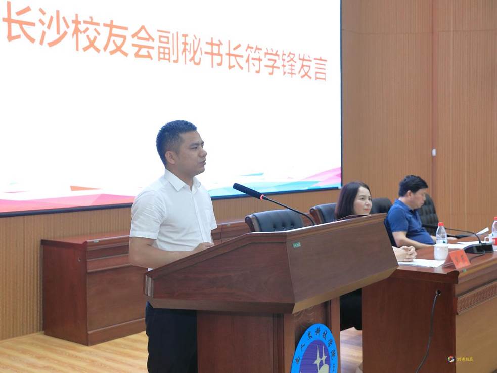 2023届校友工作联络员代表张亚琦、王瑞声分别发言并表示将牢记母校重托,认真履行校友联络员的职责。长沙校友常务副秘书长符学锋介绍了长沙校友分会的发展历程及工作开展情况,表示将一如既往支持母校,做好地方校友会的工作,服务母校、服务校友,真正做到“平台、情谊、交流、发展”。