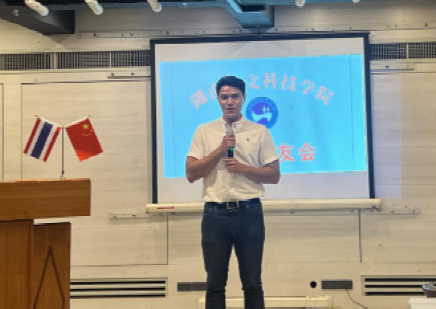 陈勇对精心筹备泰国校友会成立的校友们致以衷心的感谢,介绍了母校近年来的建设与发展,不断为校友蓄势赋能。他表示泰国校友会的成立促进了学校国际文化和教育深度融合,是学校推进国际化办学的一件大事,将架起海内外校友之间交流、互助与合作的桥梁,将托起校友与母校之间情怀激活的平台,更将示范引领海外校友会的发展与壮大。希望校友们发扬“谋近以致远,养根而俟实”的校训精神,以"敢教日月换新天”的勇气,在各自的领域中展翅翱翔,建功立业,共同谱写人文学子海外荣光,共同奏响中泰两国友谊、交流与合作的“命运共同体”之歌。