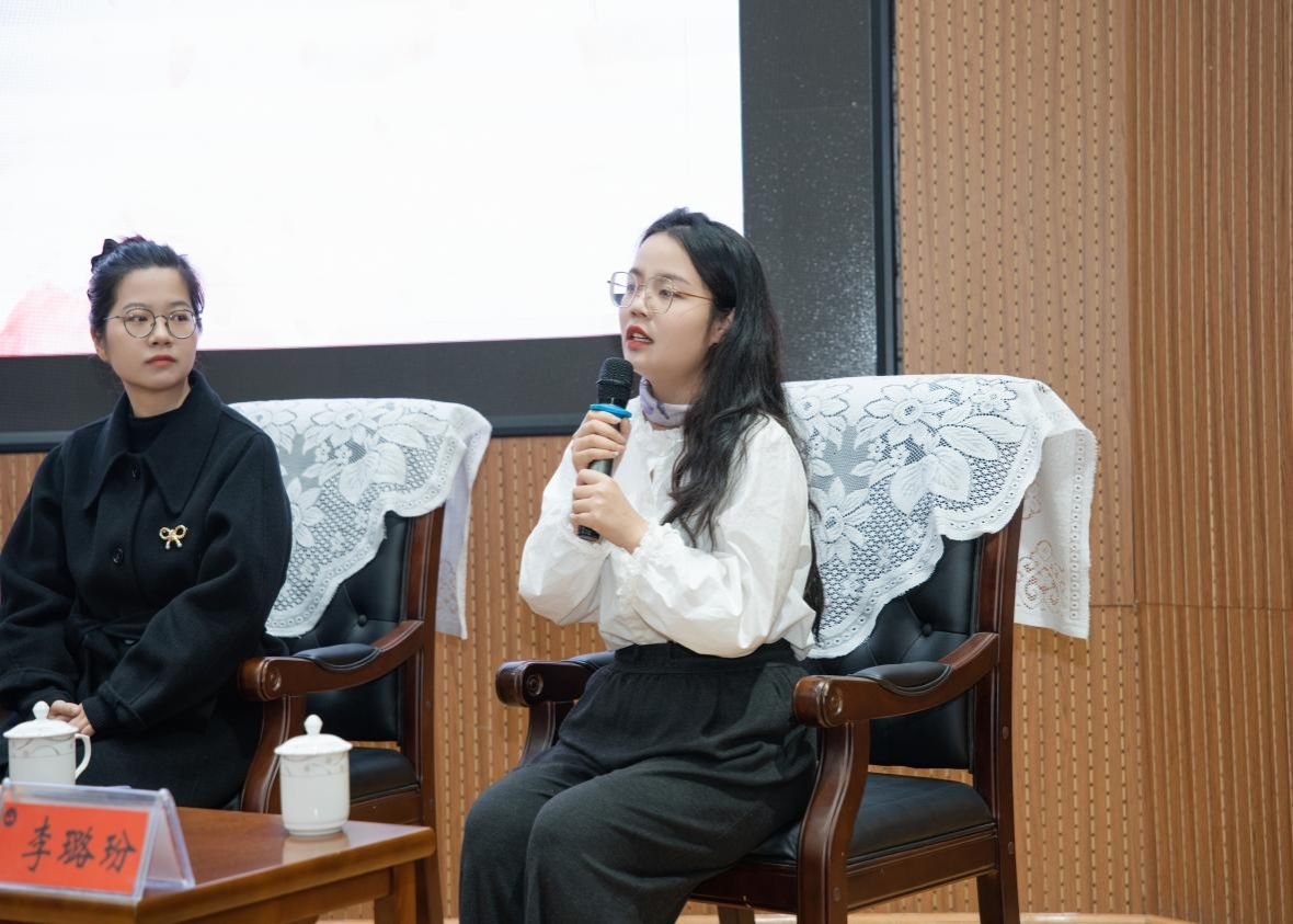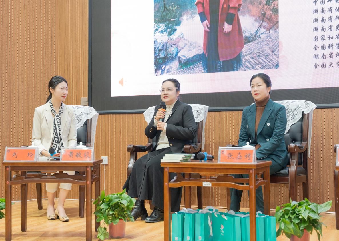 来自农业说生物技术学院的黄敏毅教授以“科研报国、育才成林”为线,讲述科研道路上的酸甜苦辣,以及科研人的浪漫柔情和坚韧执着。来自教务处的白婧副处长双向奔赴,浇灌思政之花,用坚韧自证巾帼可为。回顾求学路时,她坦言曾深陷自我怀疑,但用行动打破“女性不适合科研”的刻板印象。被学生亲切称为“玢姐”的李璐玢老师,以“青春引路,向光而行”为主题,分享在湖南省第十届辅导员素质能力大赛的夺冠经历,讲述“90后”辅导员与“00后”学生共同成长的暖心故事。