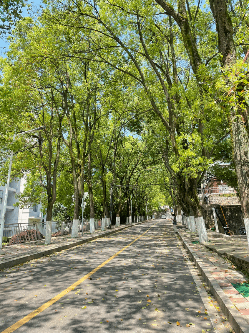 秋天,没课的时候在学海路闲逛,道路两旁绿树成荫,阳光透过枝叶洒下,自在又惬意。