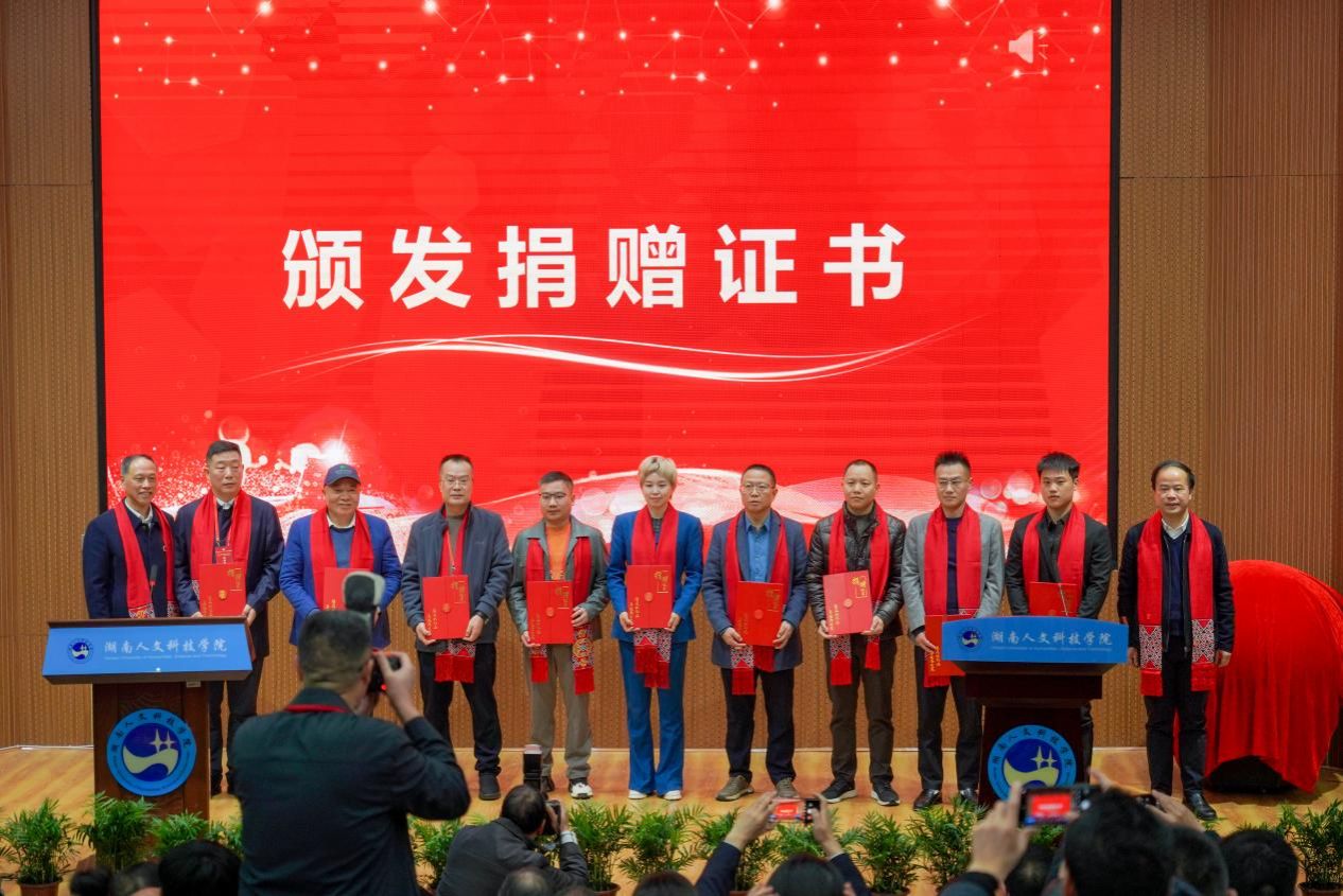 校领导依次为捐赠政府代表、捐赠企业代表、捐赠校友代表颁发捐赠证书,全场气氛热烈,掌声不断。
