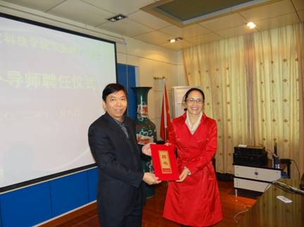 校长郭军给校外硕士研究生导师邵瑛颁发聘书