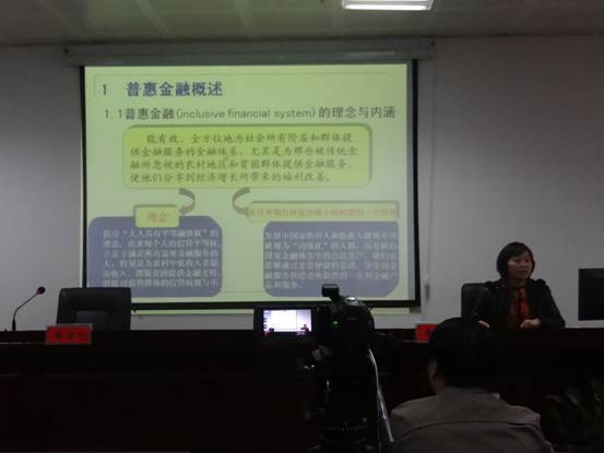 讲座上,李教授详细说明了普惠金融的理念与内涵,介绍了普惠金融“人人具有平等融资权”的理念及其在政府和市场作用下的不断改革发展;以图解的形式展示了普惠金融与小额信贷的关系,以GB和BRI为例说明了普惠金融机构的具体运作方式;结合我国国情,详细阐述了我国普惠制金融发展的几个阶段及我国普惠制金融背景下农村金融“双线”改革的思路。