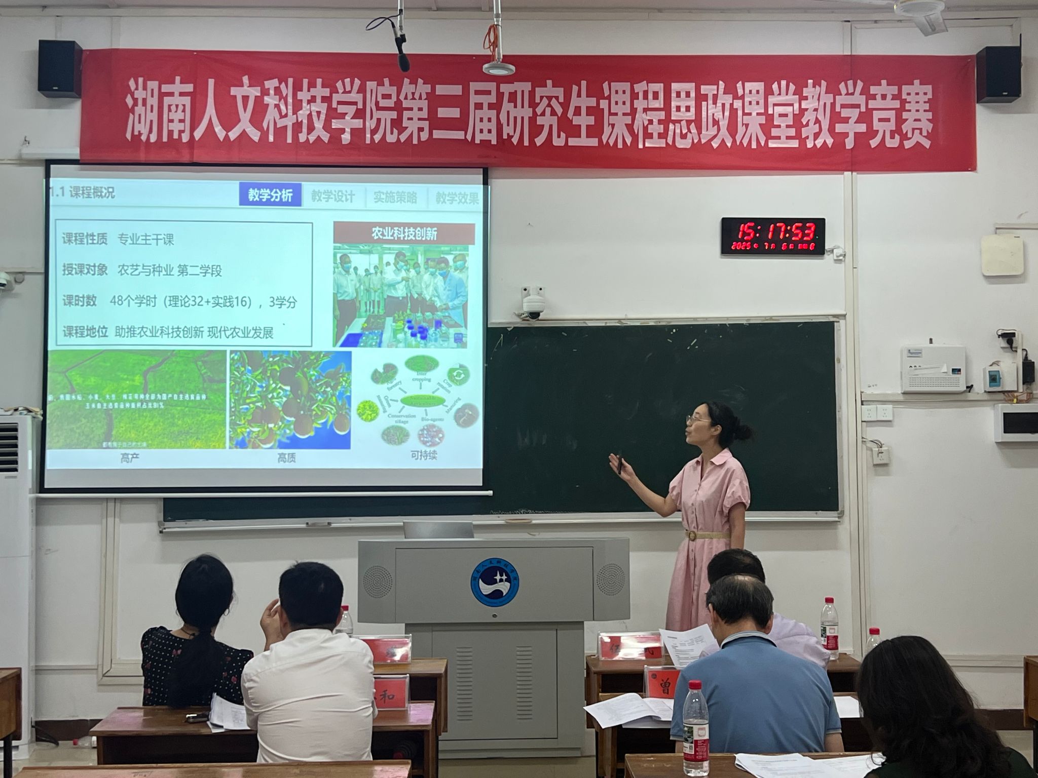 为深入贯彻习近平总书记关于教育的重要论述,全面落实全国和全省研究生教育会议精神,推动实现“三全育人”,研究生教育教学部于7月6日在播馨楼110教室成功举办学校第三届研究生课程思政课堂教学竞赛暨省赛选拔赛。本次竞赛由研究生教育教学部副主任周丽华主持,相关领域的专家担任评委,研究生教育教学部全体老师参加,各领域教师到场观摩。
