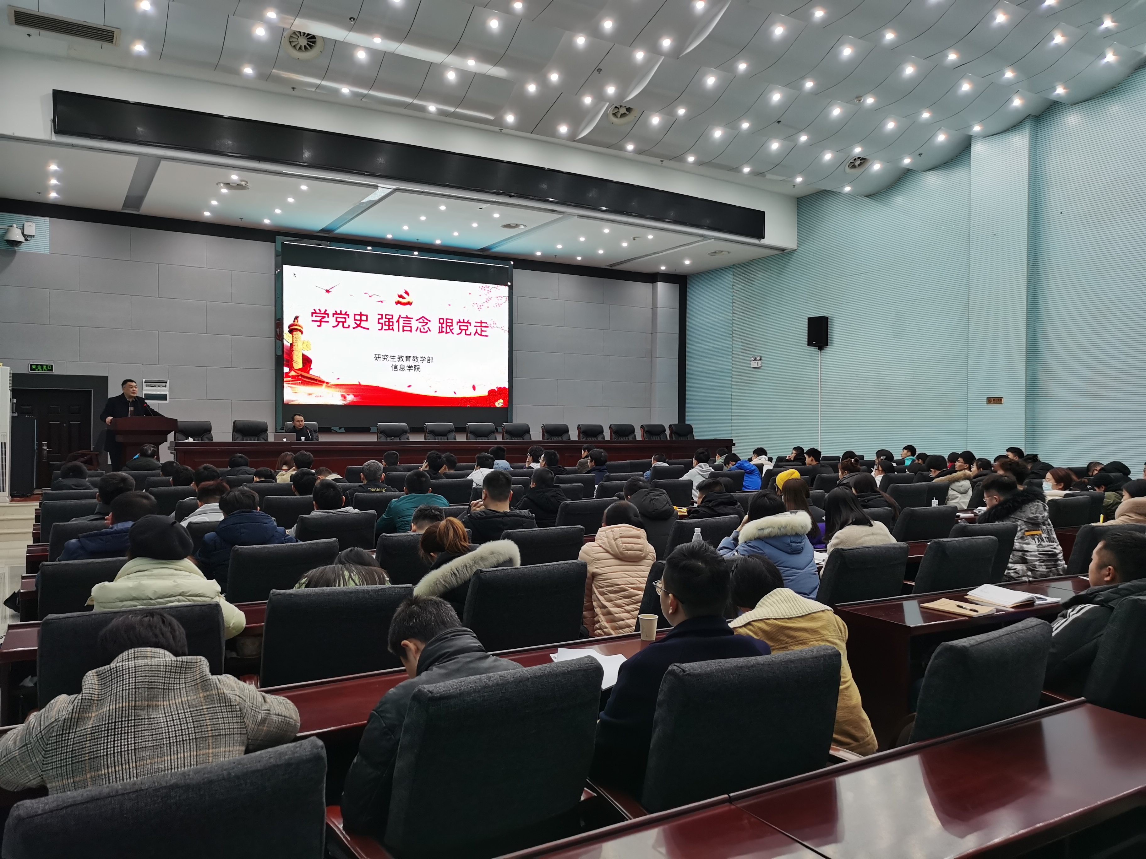 2021310日,研究生教育教学部直属党支部书记在图书馆第二会议室,开展了《学党史 强信念 跟党走》的党课教育。研究生教育教学部副主任、党支部副书记、辅导员、班主任级20级全体研究生参加了此次党课学习教育活动。