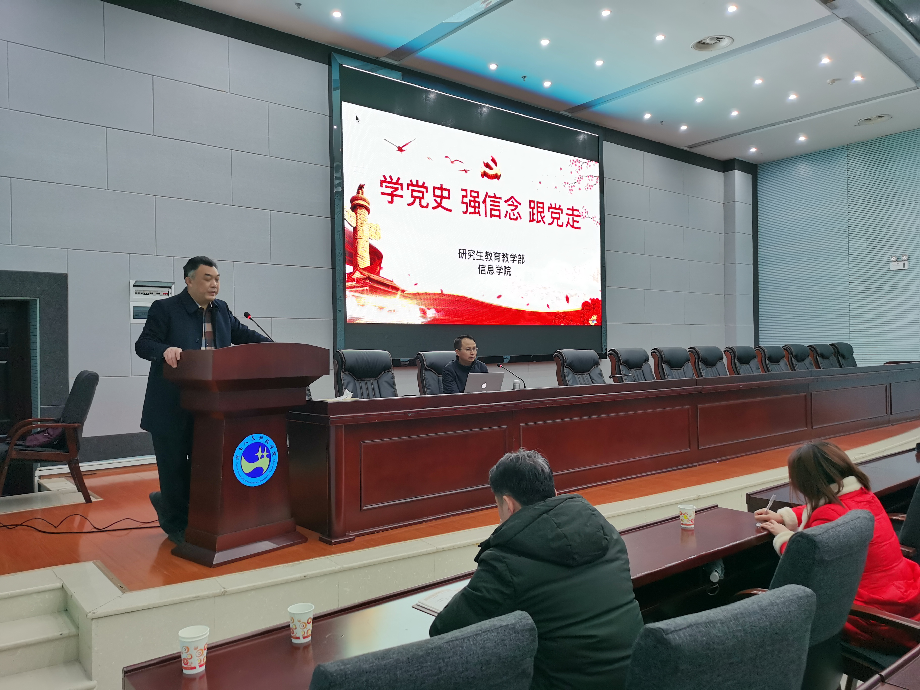 图二:研究生教育教学部直属党支部书记讲课现场