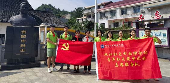 团队参观了“红军虎将”贺国中故居,详细了解贺国中同志的英雄事迹,追思烈士的革命精神,厚植家国情怀,传承红色基因,坚定前行意志。瞻仰了贺国中同志生前的珍贵历史物品、照片,观看了《将星闪耀:红军虎将贺国中》专题片。贺国中同志英勇无畏的革命精神,短暂而不平凡的人生历程,深深地感染着在场的每位同学,大家纷纷表示在今后的学习工作中,要不忘初心、牢记使命,汲取前辈英勇奋斗的力量,为实现乡村振兴贡献自己的智慧和力量。