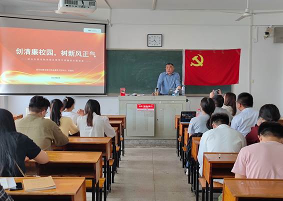 支部书记彭健民围绕着要立“坚定紧跟、绝对忠诚”的政治品德、要立“积极向上、崇真向善”的思想品德、要立“勤政为民、清廉为公”的工作品德、要立“戒奢尚简、不为物诱”的生活品德等四个方面开展了党风廉政专题党课。彭书记强调:作为一名党员,要从日常学习生活中践行反腐精神,加深党性观念和廉洁意识,树立以清廉为荣的良好校园风尚。