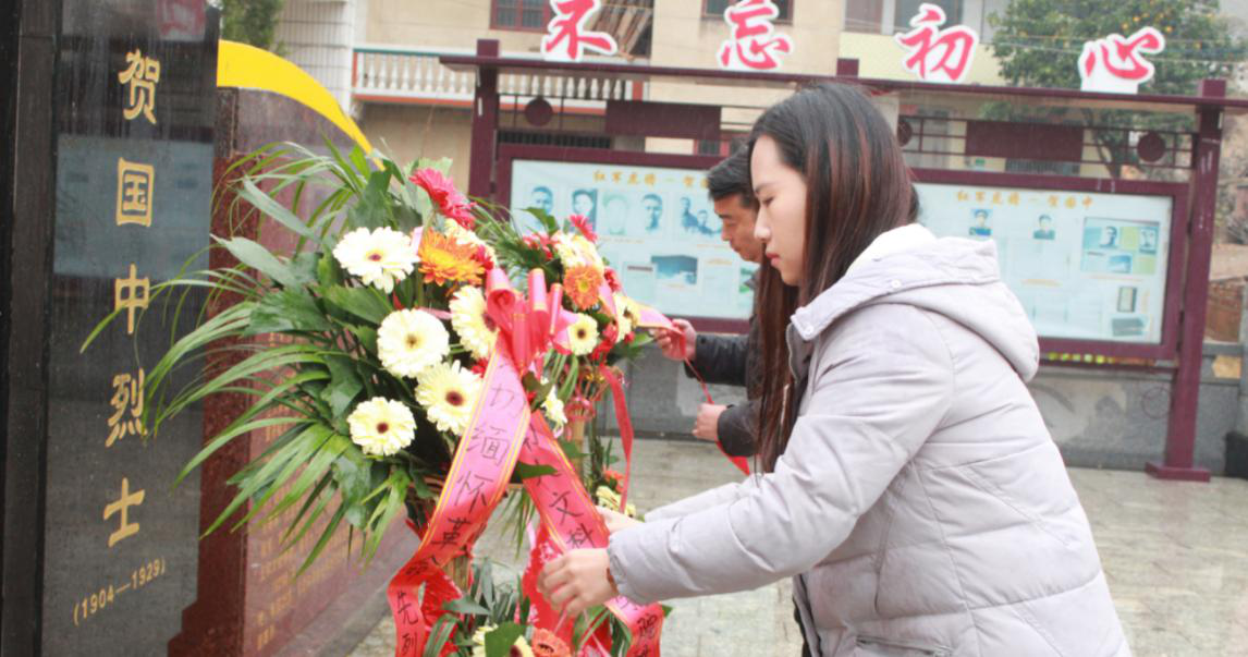 为激发同学们的爱国热情,本次活动带领全体学生参观贺国中故居,在贺国中烈士碑前进行默哀,随后组织党员、入党积极分子等开展宣誓活动,向党旗宣誓,在此上了一堂意义深刻的党课,坚定了同学们承担历史重任的信念,让同学们学到了革命精神,真切感受到了过去的烽火岁月,接受了一次心灵的洗礼,点燃了同学们心中的红色激情。