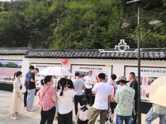 思想认识得到升华、心灵受到洗礼。9月9日下午,19级研究生来到了油溪桥村,呈现在大家面前的是一幅幅美丽的乡村画卷。在油溪桥村“金牌讲解员”——彭德友的带领下,同学们一边参观村里的文化长廊,一边了解油溪桥村的发展历史和现在的基本情况。深刻感受了十二年来,油溪桥村如何从一个“三无”(无资源、区位、基础优势)省级深度贫困村转变为如今的“明星示范村”,靠的是村支两委的创新引领和精细化管理;更离不开全村群众共同发扬“油溪桥”精神,积极以民主协商的方式参与到村庄治理中来。同学们为油溪桥村的巨变所震撼,也为油溪桥村的管理智慧所折服;同学们对新农村有了感性认识,对乡村振兴战略有了初步理解。