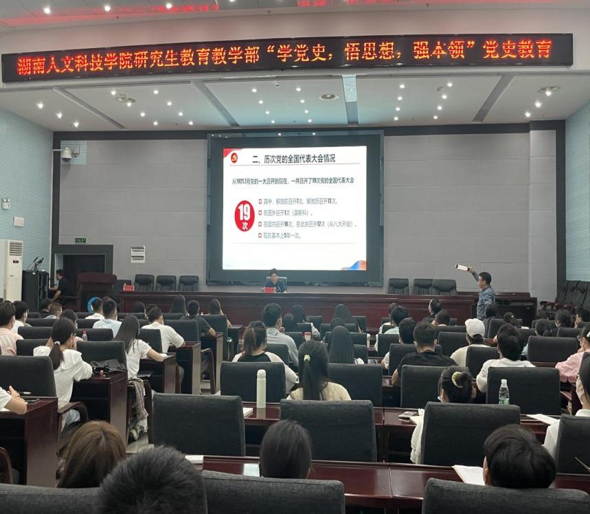9月26日,beat365党委书记刘和云围绕“学党史,悟思想,强本领”主题,为研究生讲授党史学习教育专题党课。研究生教育教学部直属党支部书记彭健民主持会议,研究生教育教学部全体教师及全体研究生聆听了党课。