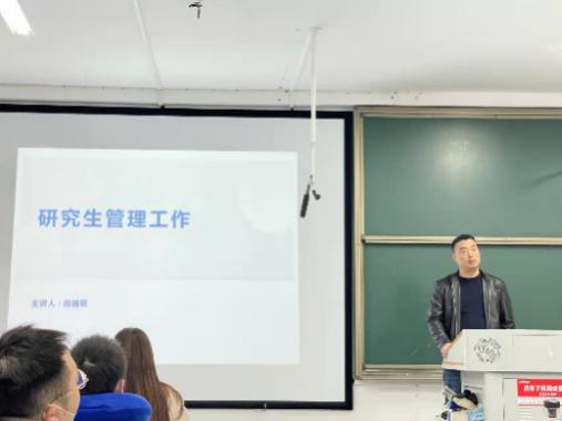 彭健民主任从疫情防控,研究生奖助学金评审和课程教学管理等方面讲解了研究生管理工作,并告诫告同学们要认清当前疫情防控局势,规范请假程序,重视各个培养环节的完整性。