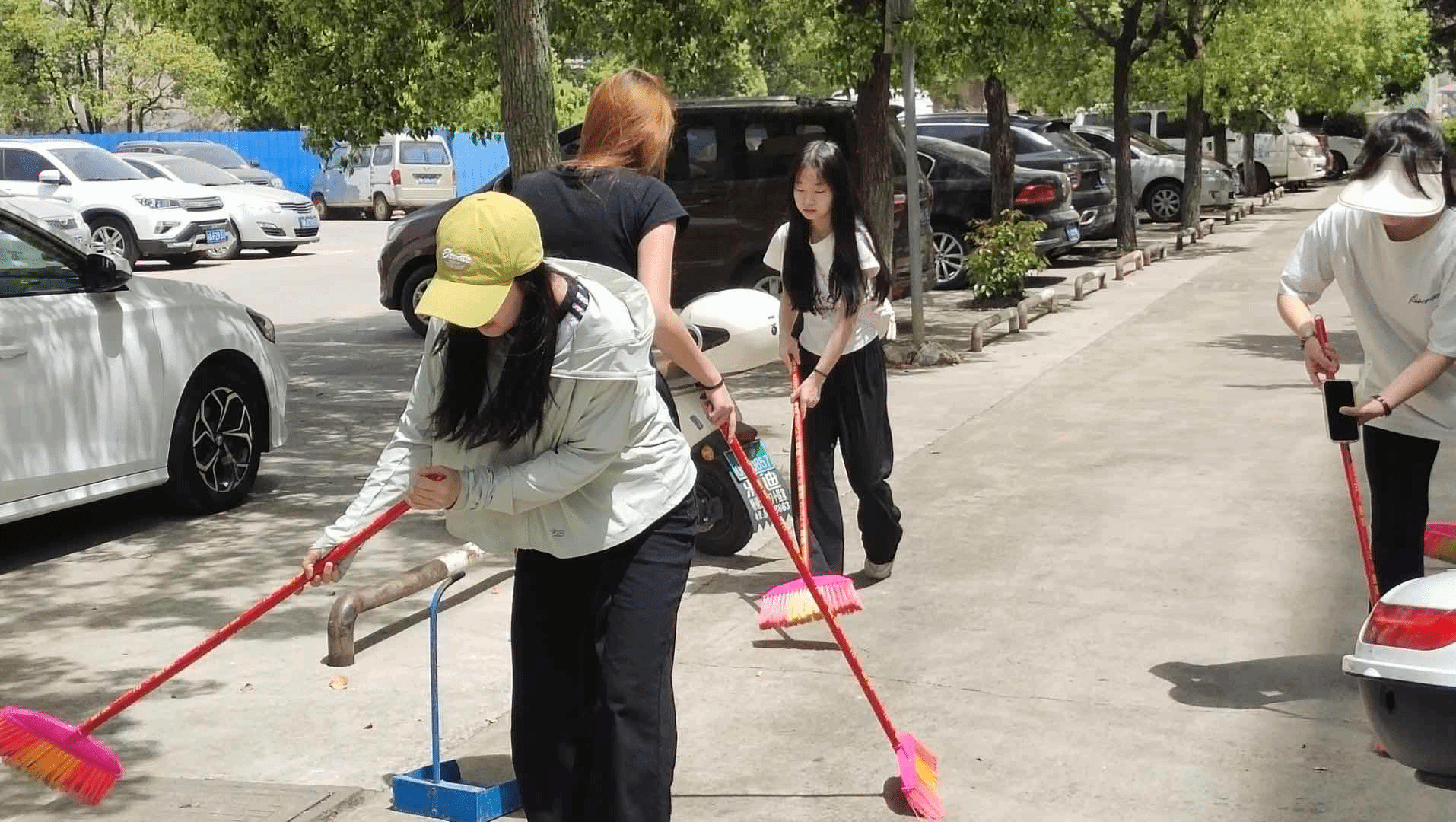 (同学们认真打扫)