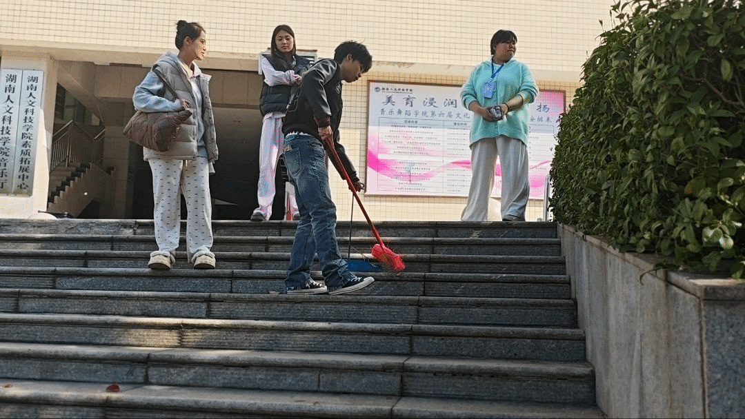 为深入贯彻劳动教育理念,营造整洁优美校园环境,音乐舞蹈学院于2025年11月24日在逸夫楼前开展了“青春护绿,洁净校园”守望花田活动。